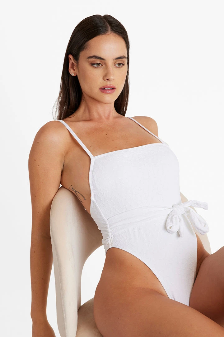 Do I hear wedding bells? This Delicate Blooms Belted Square Neck One Piece features an elegant square and a faux belt for an accentuated waist line that will make anyone say “I Do”.