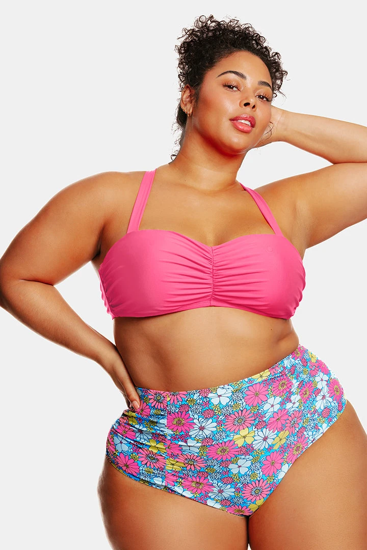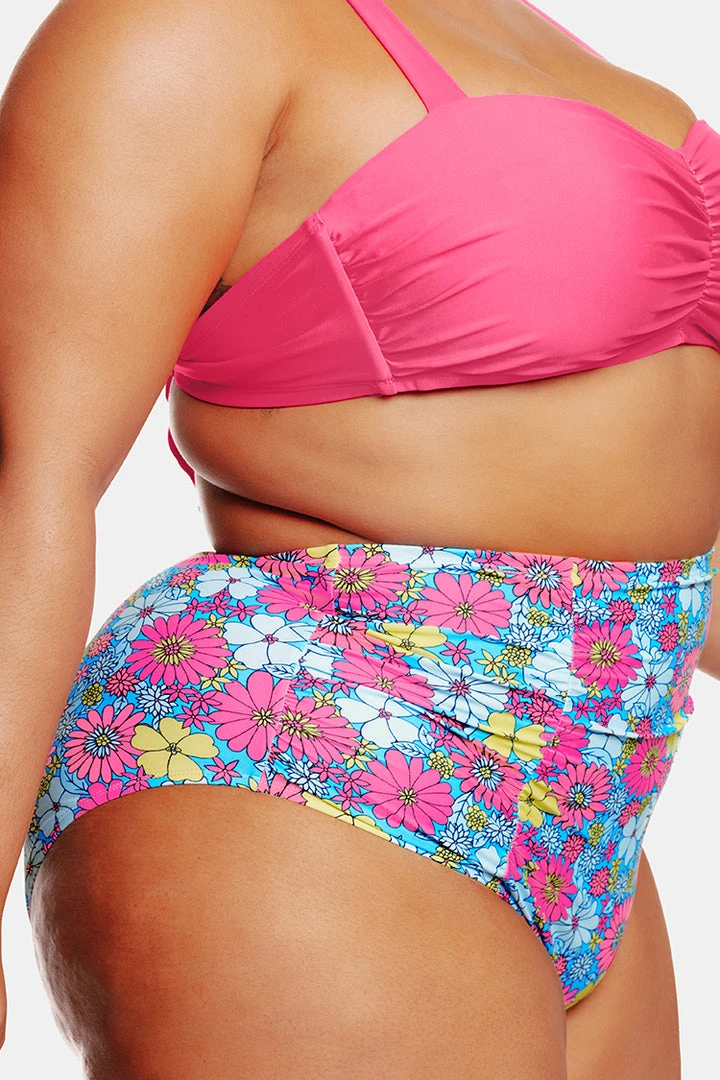 Flirty and fun, we are obsessing over this pair of bikini bottoms for the summer babe! It features an allover floral print, shirred detailing, high-rise waist, and classic bum coverage.