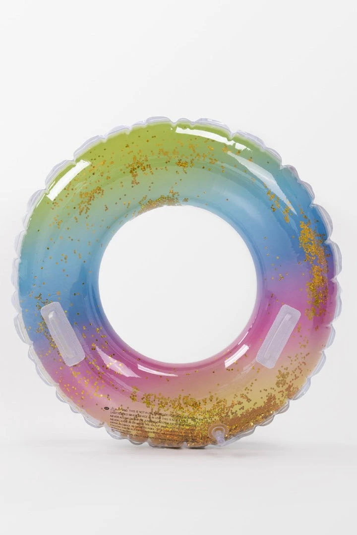 Have fun and relax at your pool or lake party with this Rainbow Sherbet Inflatable Rainbow Swimming Ring! Its a unique lounger raft at pool fun party. Easy chat with your party friends. Enjoy the water this summer. Package includes repair patch in case of punctures. This item is not a life saving device;Â Do not inflate preferably more than 90%; Keep away from fire or sharp objects.
