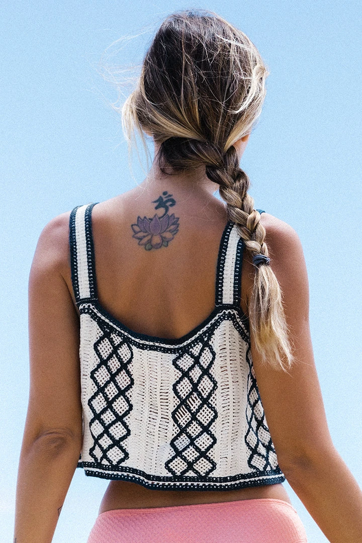 This Rosalee Crochet Loose Waisted Top has many patterns, including interwoven lines and flower patterns. It is very lively and lovely as a whole.