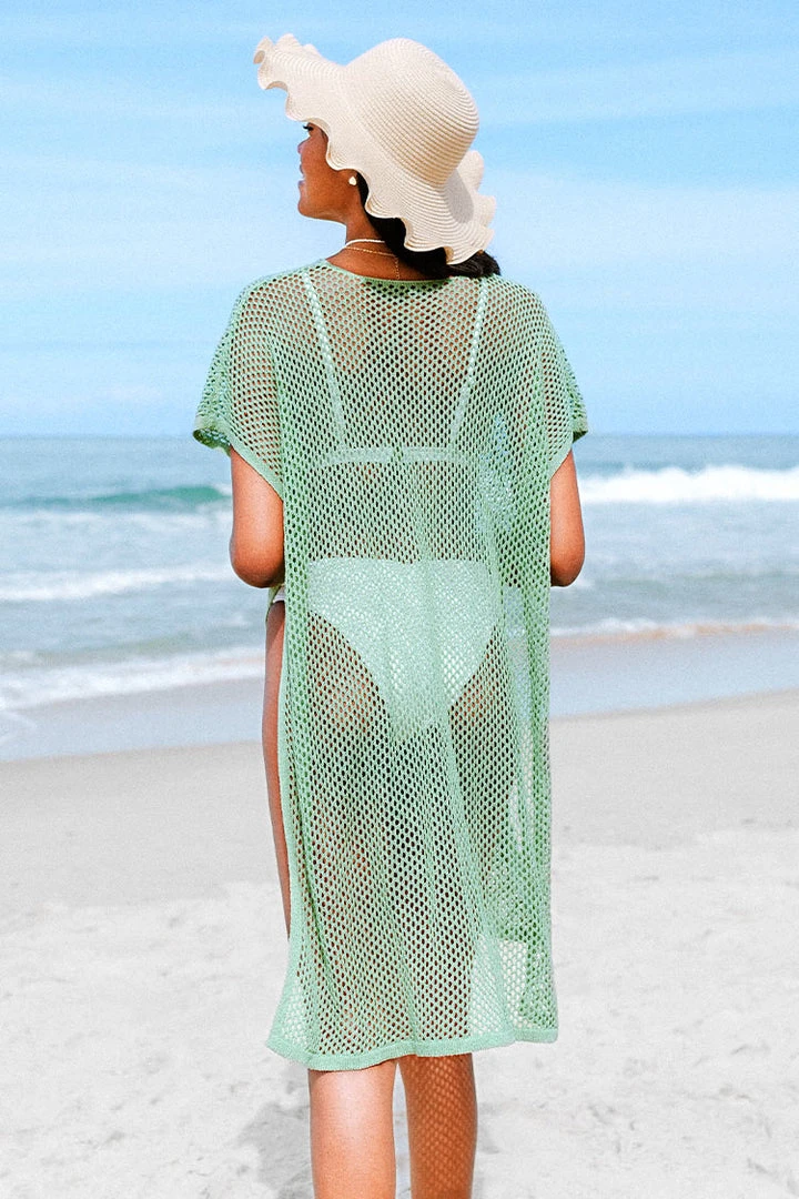 Take your beach combo to a whole new level with Rosalyn Green Hollow Out Split Cover Up. Featuring green material with hollow out and split side design. Simply layer this over the matching bikini for beach look.