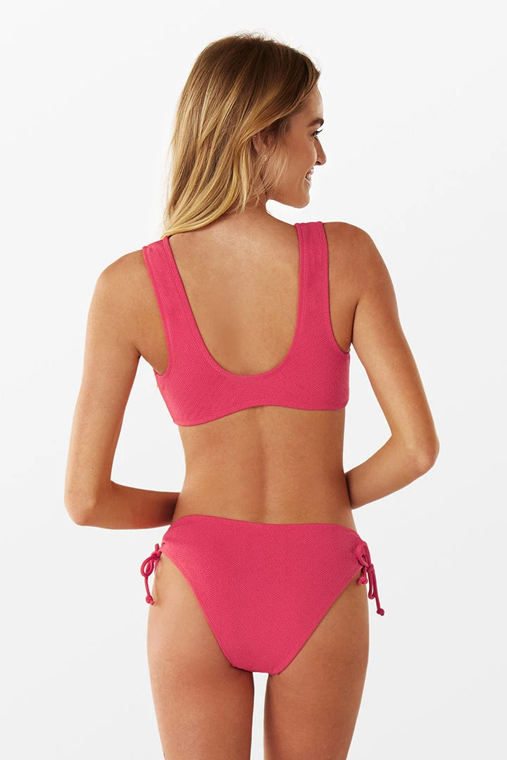 Basic but never boring, the Red Solid Knotted Bikini set elevates the classic bathing suit with scoop back and a knotted detail at the bust. The matching bikini bottom features drawstring at sides with a low waisted fit.