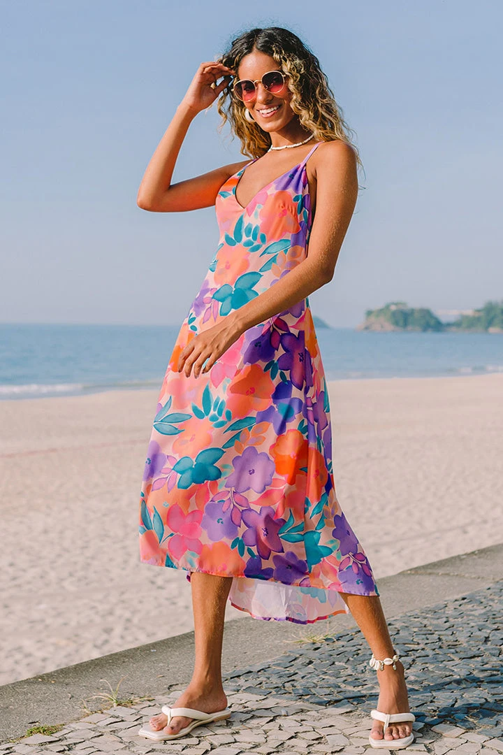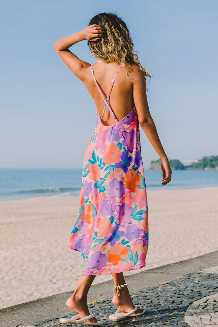 This Sakura Backless V-neck Mini Dress features floral pattern and high low hem. Get out there and get ready to turn some heads.