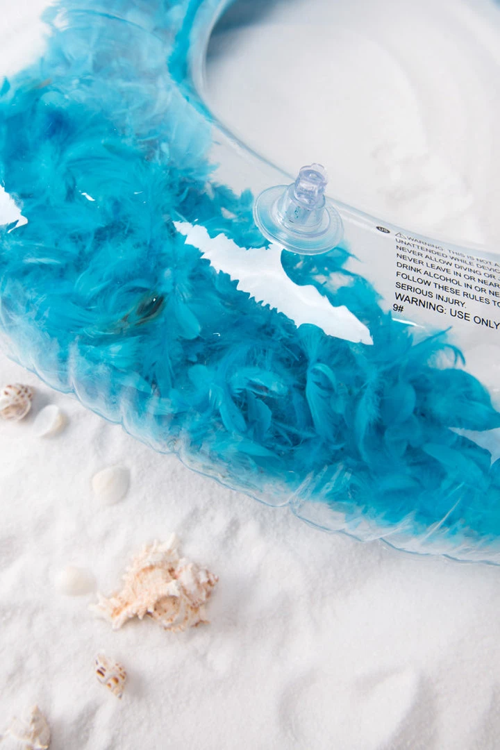 Our Seafoam Heart Shape Swimming Ring with Feathers is perfect for yourself at the beach or pool, enjoy the water time. Feather design in the circle, light and elegant, bringing you different beauty. Package includes repair patch in case of punctures. This item is not a life saving device;Â Do not inflate preferably more than 90%; Keep away from fire or sharp objects.