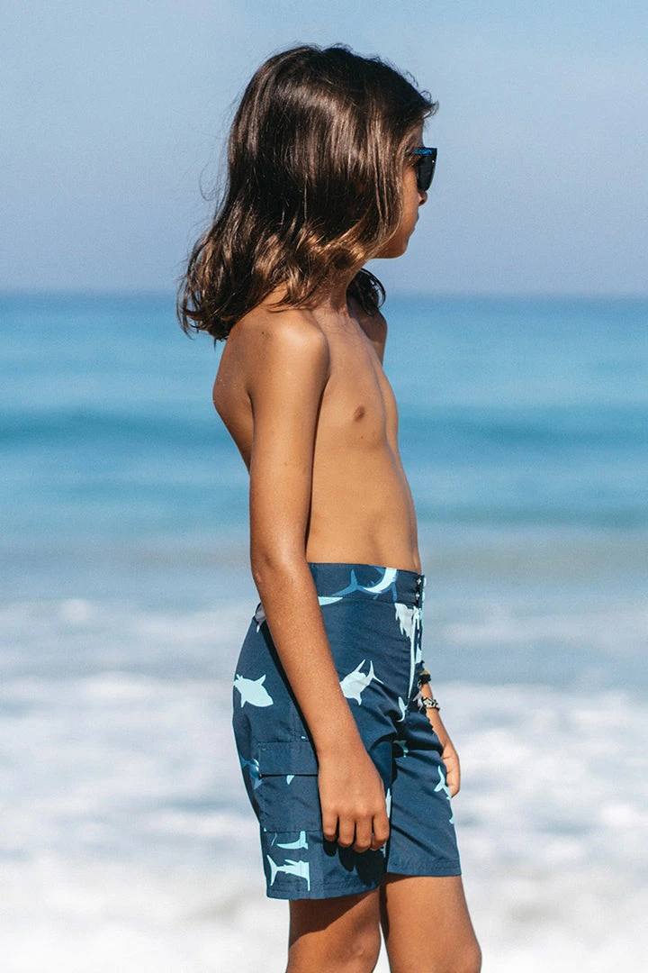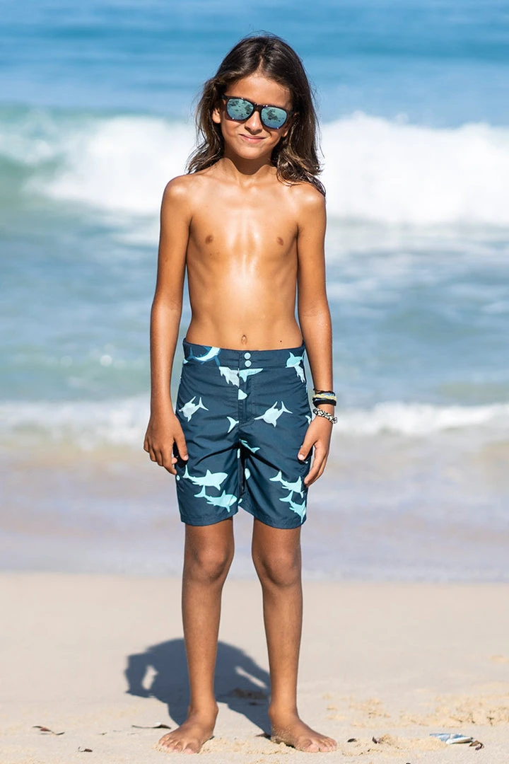 These classic swim trunks are perfect for fun-filled summer days and trips to the beach. Two front pockets provide storage for his small essentials, while elastic waistband ensures a comfy fit. He’ll also love the shark print on these durable, quick-drying shorts.