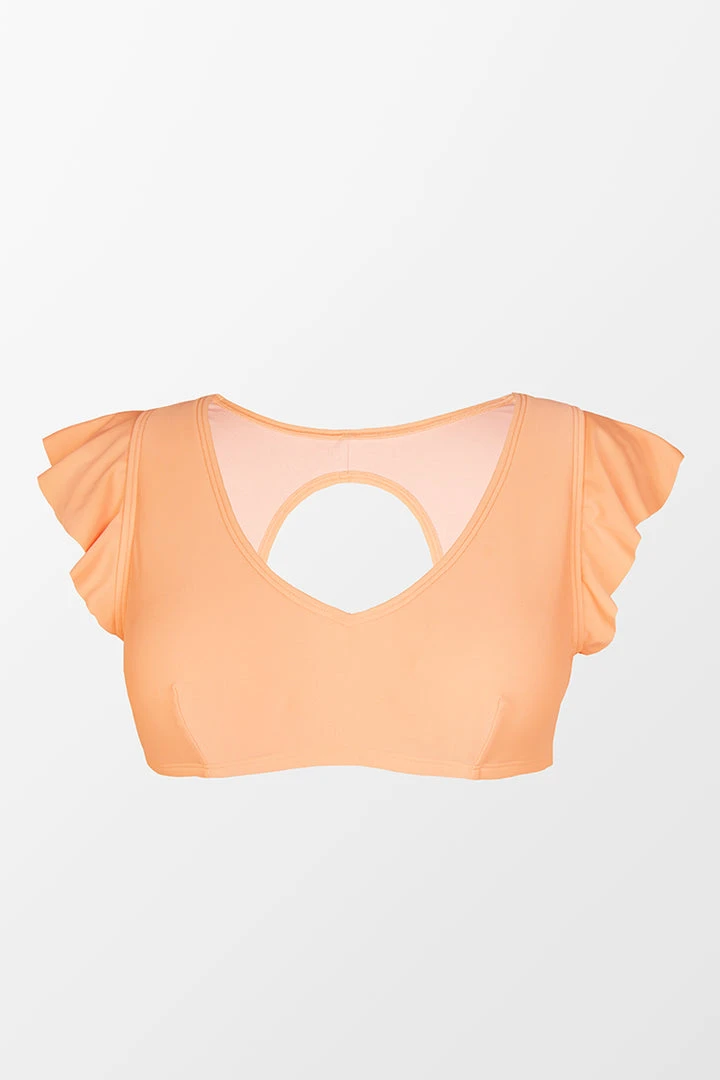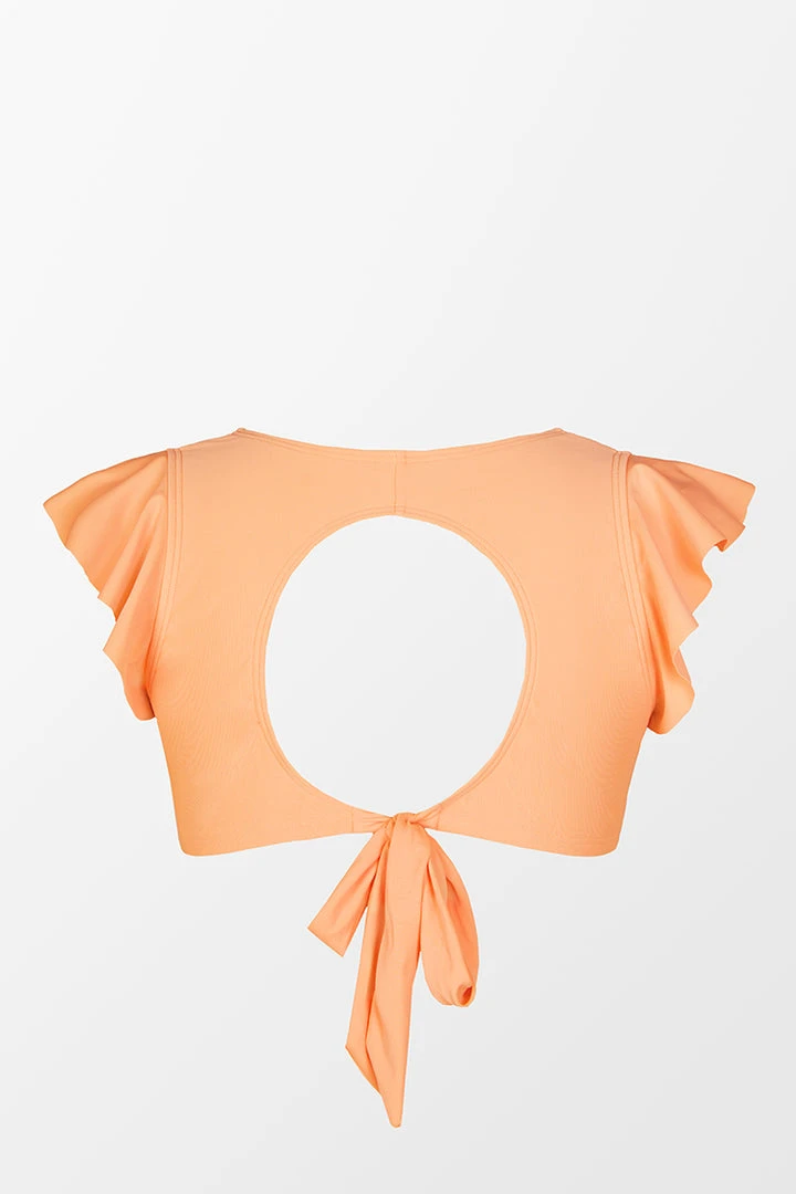 This Spring Macaron Ruffled Bralette Plus Size Bikini reminds us of a happy sunshine summer day. The cute bikini top comes in a v-neck bralette silhouette and features ruffled sleeves and a back cutout. The adjustable tie-back closure allows for adjustability to accommodate various bust sizes.