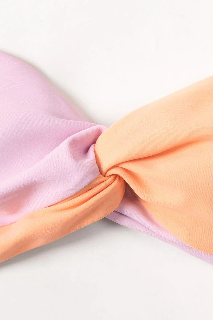 Add a fun twist to your beach day outfit with the Spring Macaron Twist Front Bralette and V Front Hipster Set. The bralette bikini top features a sexy V neck and cute twisted front detail. The matching V front hipster bottom will enhance your figure, while the colorblock design adds a modern feel.