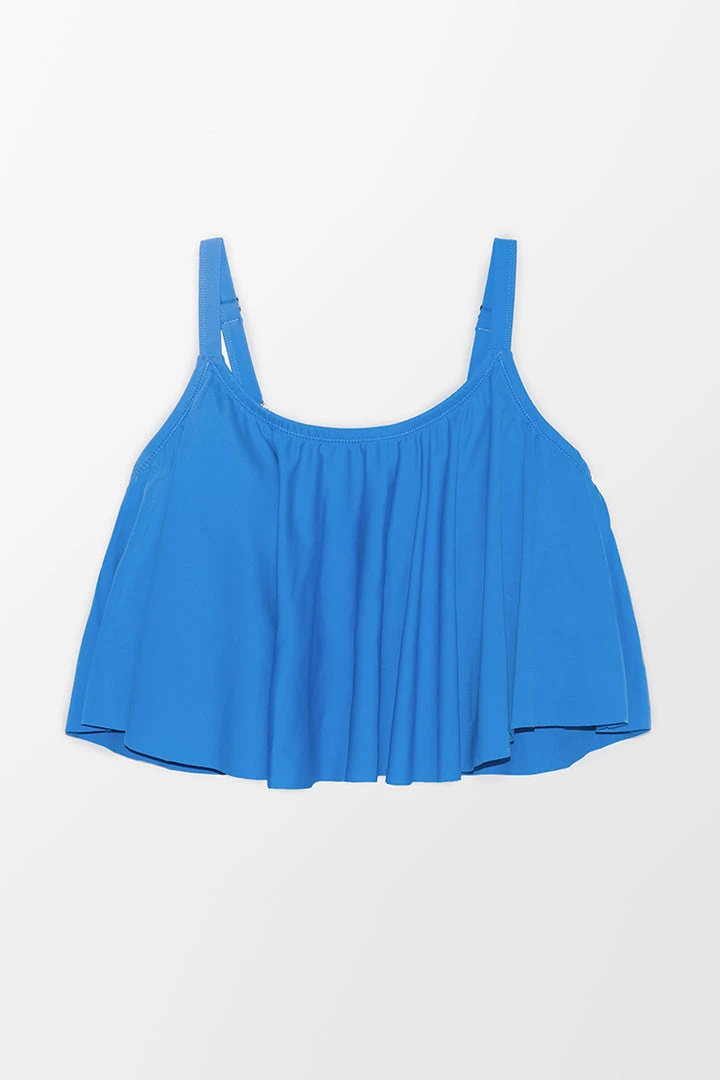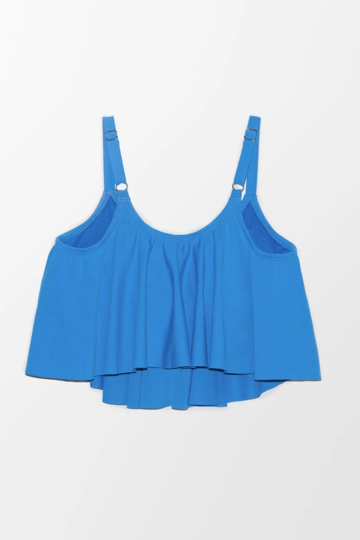 Stand out in our Stacey Blue Ruffle Plus Size Tankini Top. Detailed with ruffle design. Complete the look with our Stacey Tropical plants High Waist Plus Size Bikini Bottom.