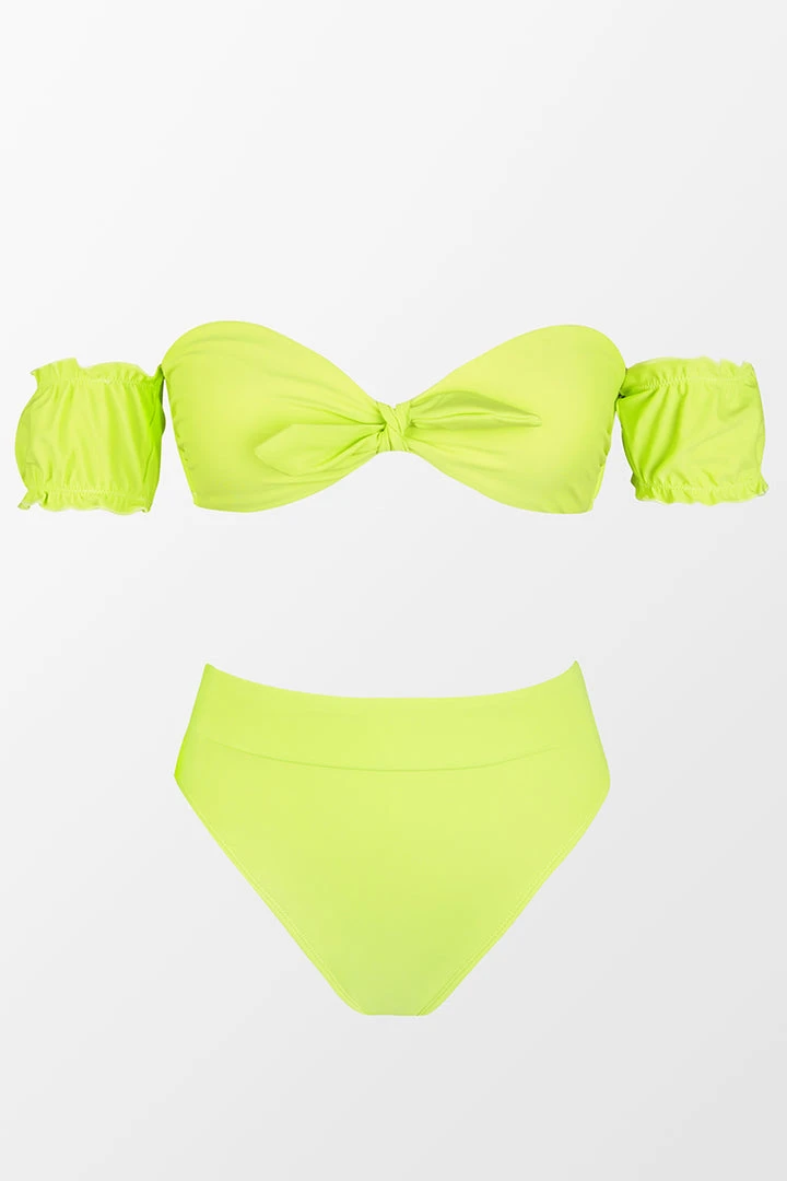 This Street Art Bandeau Short sleeve Bikini Set features bandeau and back hook details. Style with trendy accessories to complete the look.