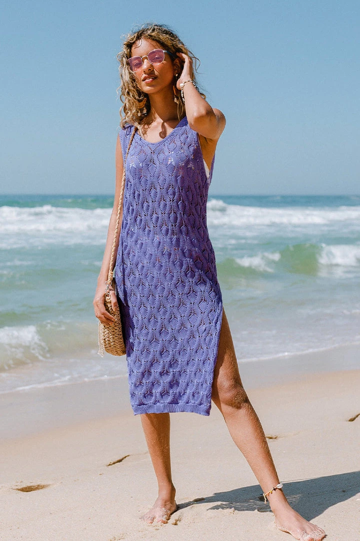 This Anita Round Neck Crochet Cover Up has a geometric pattern, it is a tight skirt that can better wrap your body in a bumpy shape, wearing it you will definitely become the most attractive person in the crowd.