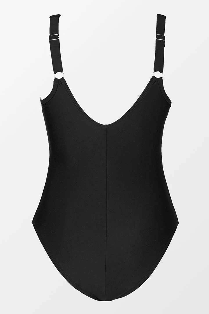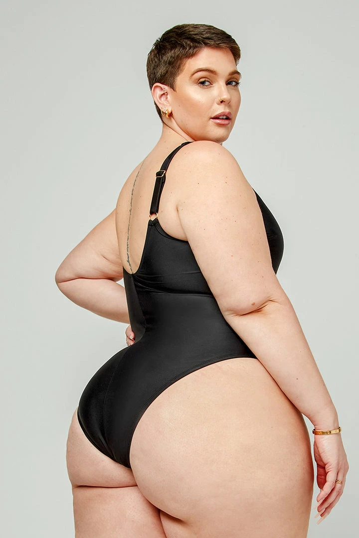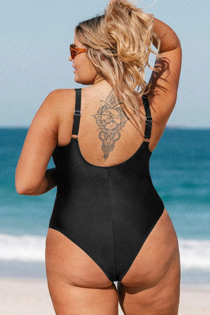 Show off in sheer in the Omniscient Solid Mesh Panel Plus Size One Piece Swimsuit. The mesh panels at the neckline and waistline add in the playfulness that every girl likes.