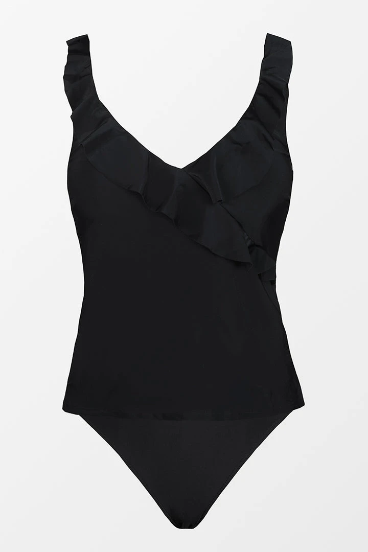 The Pool Party Ruffle Halter Tankini and Hipster Set is designed with cute little details that will make a big splash. The plunge neckline is accented with flirty ruffles and halter ties to customize your fit. The matching mid-rise hipster bottom provides classic coverage.