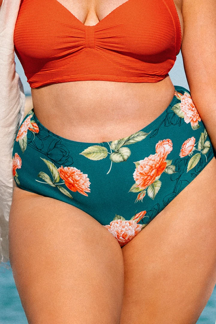 Look and feel your best in the Kora Floral Plus Size Bikini Bottom. High-waisted bottom offers a flattering fit with tummy coverage. Complete the look with our Kora Crisscross Plus Size Bikini Top for that perfect bikini set for the beach.