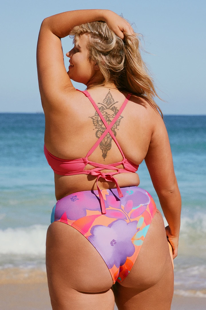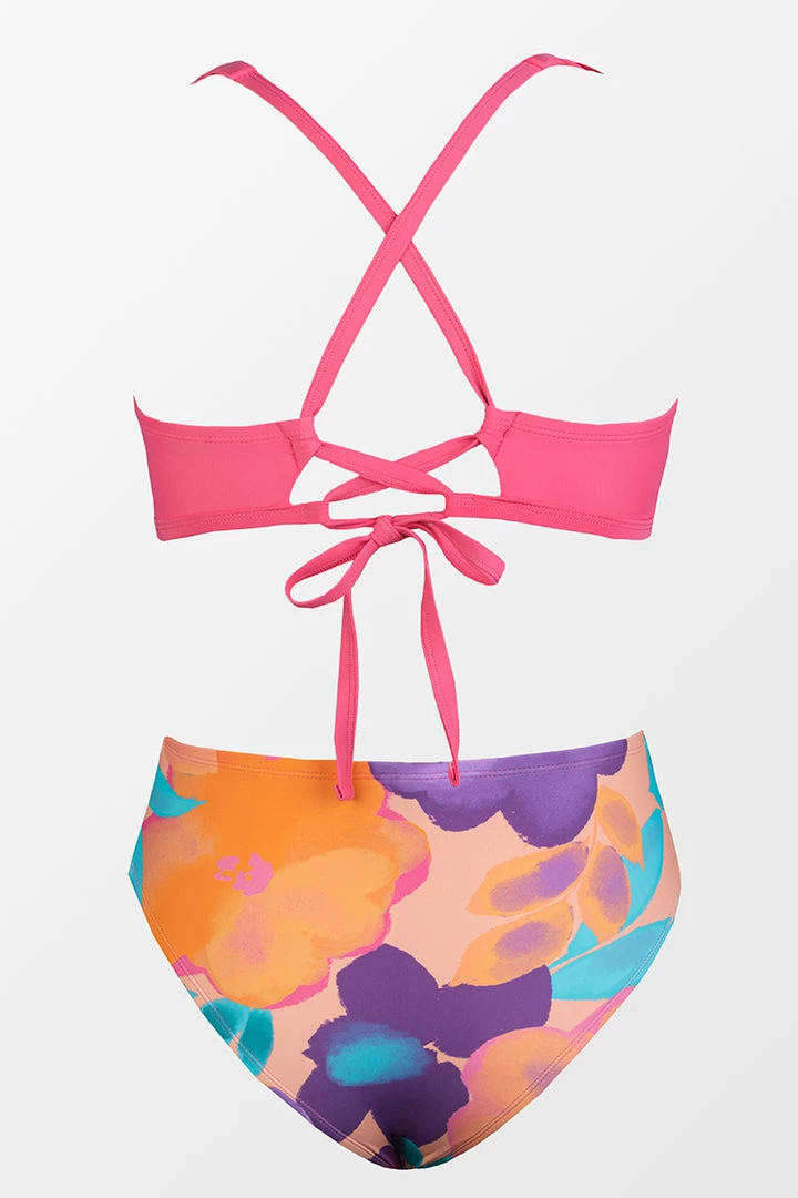 Refresh your beach style with this ruffled bralette bikini top featuring pretty ruffle trims for irresistible feminine charm. The high waist bikini bottom features a dainty floral print that will make you stand out from the rest.