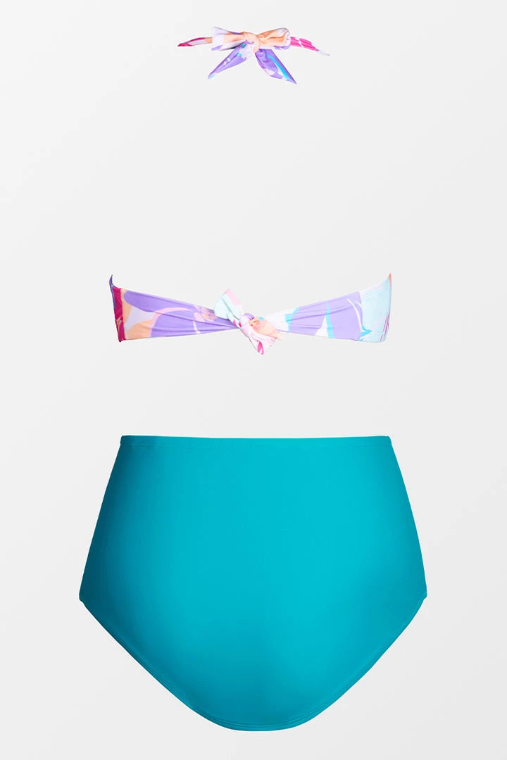 With feminine styling that shapes and supports, this bikini set is your perfect pick for an adventurous beach day. The molded cups enhance curves, and the solid color bikini bottom has a high-waist silhouette with shirring that flatters your figure.