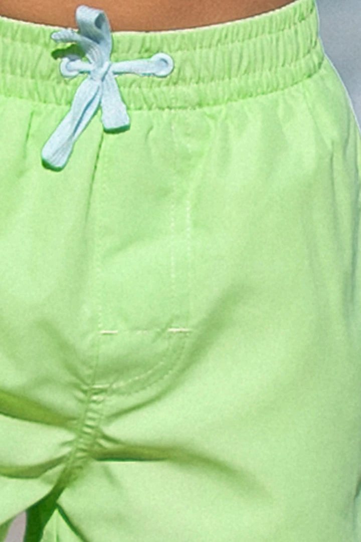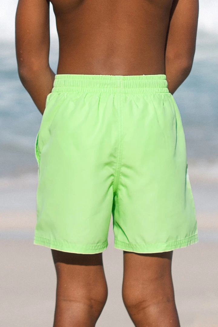 These boys’ swim trunks feature a refreshing lime color and an elastic waistband with drawcords. The classic silhouette and comfortable fit make them perfect for beach days, pool parties, or a little fun in the sprinkler.