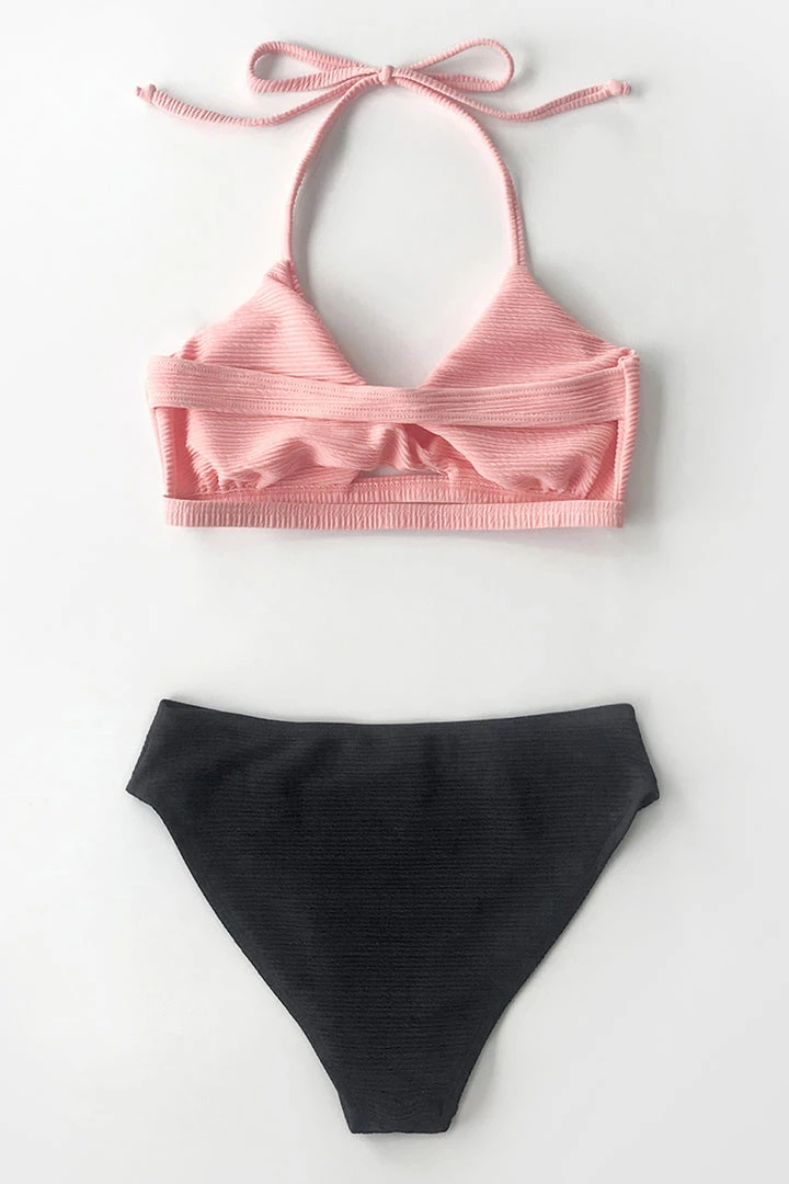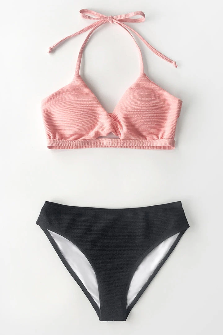 The Textured Pink and Navy Halter Bikini is everything you need for a seaside escape. The mid-rise bikini bottom provides a comfy, figure-flattering fit, while the self-tie straps adjust to your perfect fit.