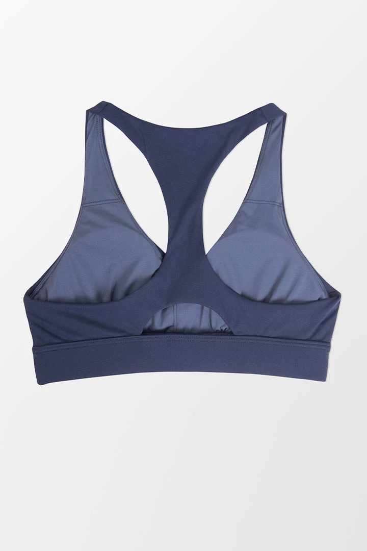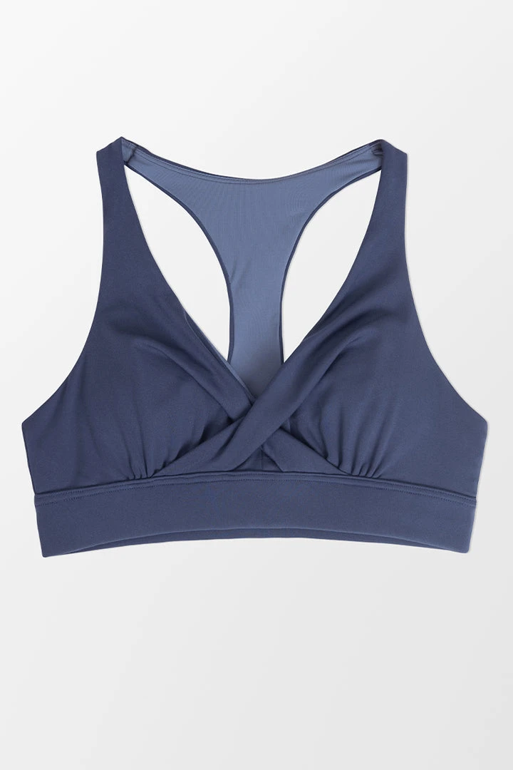 Get ready to stretch it out in style with the Tempest Twist Sports Bra! Lightweight and stretchy nylon, with a front twist and a back cut out, shapes this medium impact sports bras that falls from wide straps into a V-neckline and fitted design with a banded hem.
