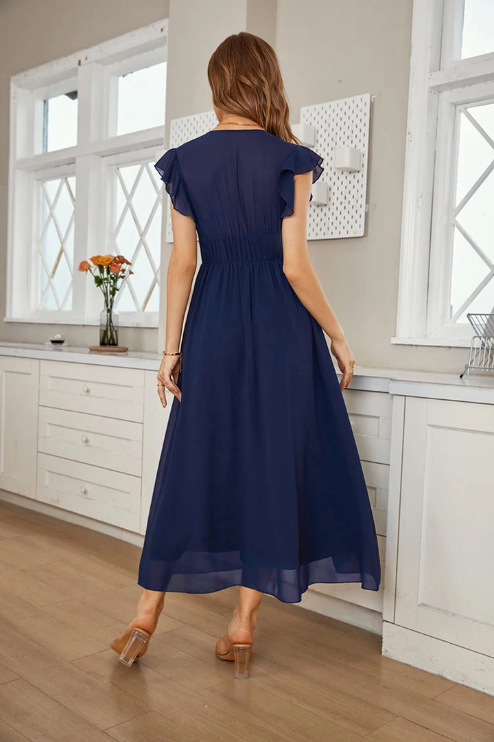 This Plunge Ruching A-shape Dress features short sleeve and tie design, it is very suitable for both work and daily leisure.