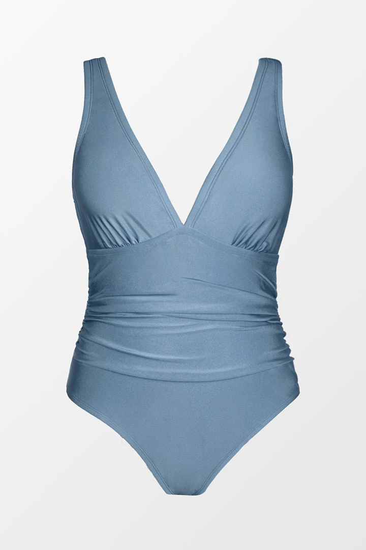 Va va voom! This one-piece swimsuit hugs your curves in all the right places and makes you look like an absolute knock out. With its plunging neckline, ruched sides, and cross tie back, you’ll be the envy of your besties.
