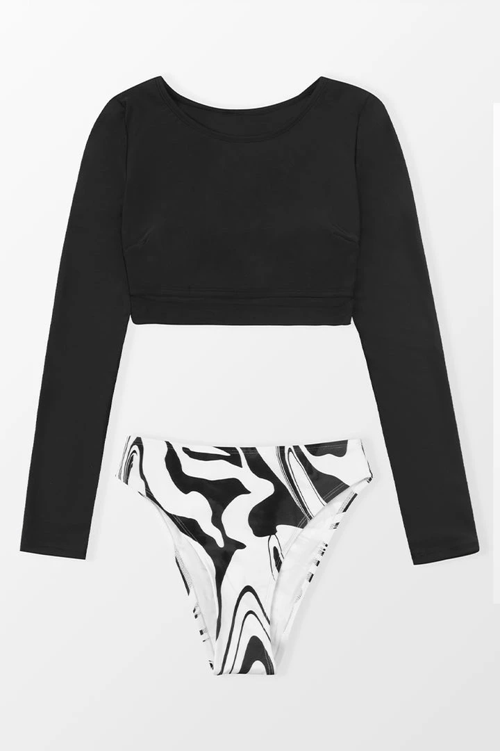 CUPSHE Palm Beach Long Sleeve Colorblock Front Zip One Piece Swimsuit