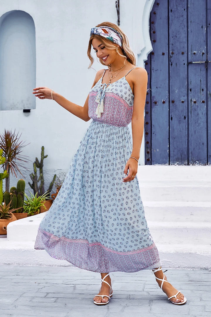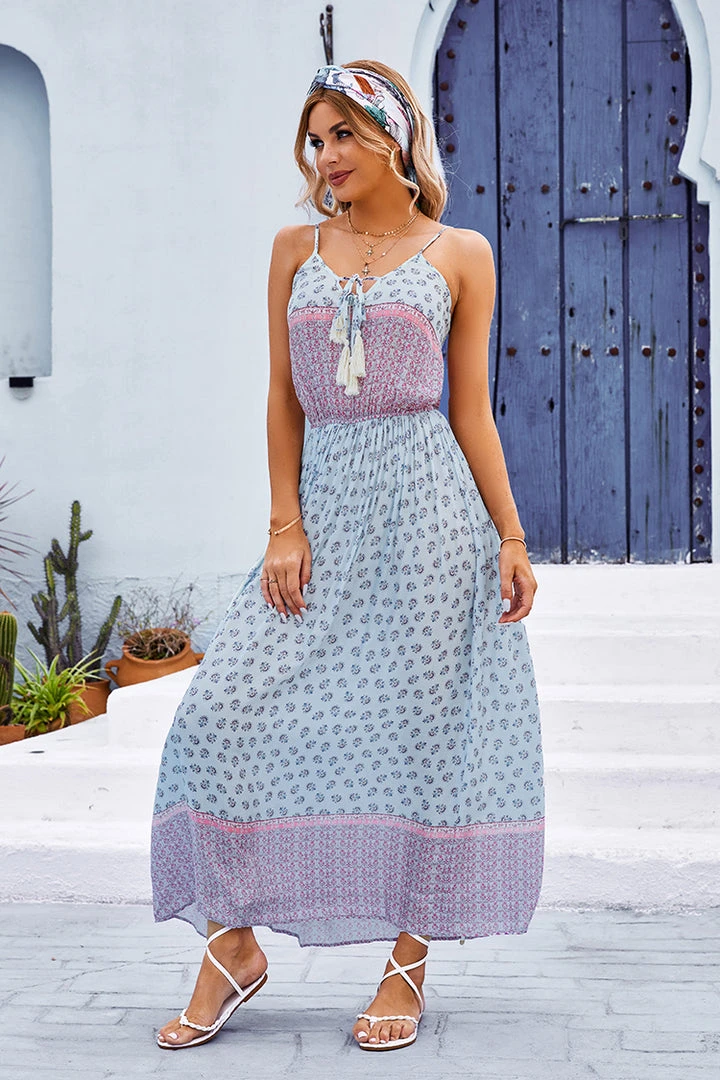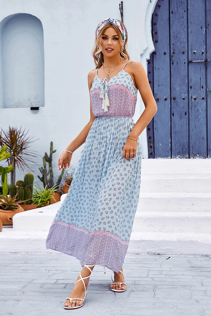 This Yasmin V-neck Backless Tie Dress is full of sweet and lovely vibes, perfect to wear to the beach and enjoy the blending of waves and wind.