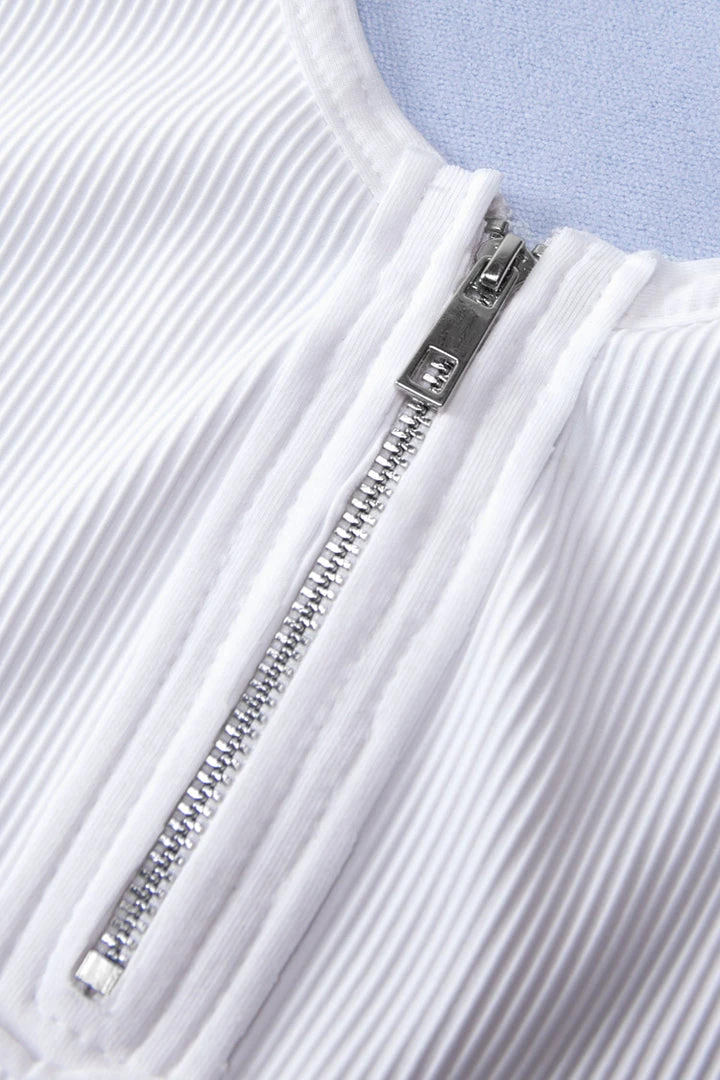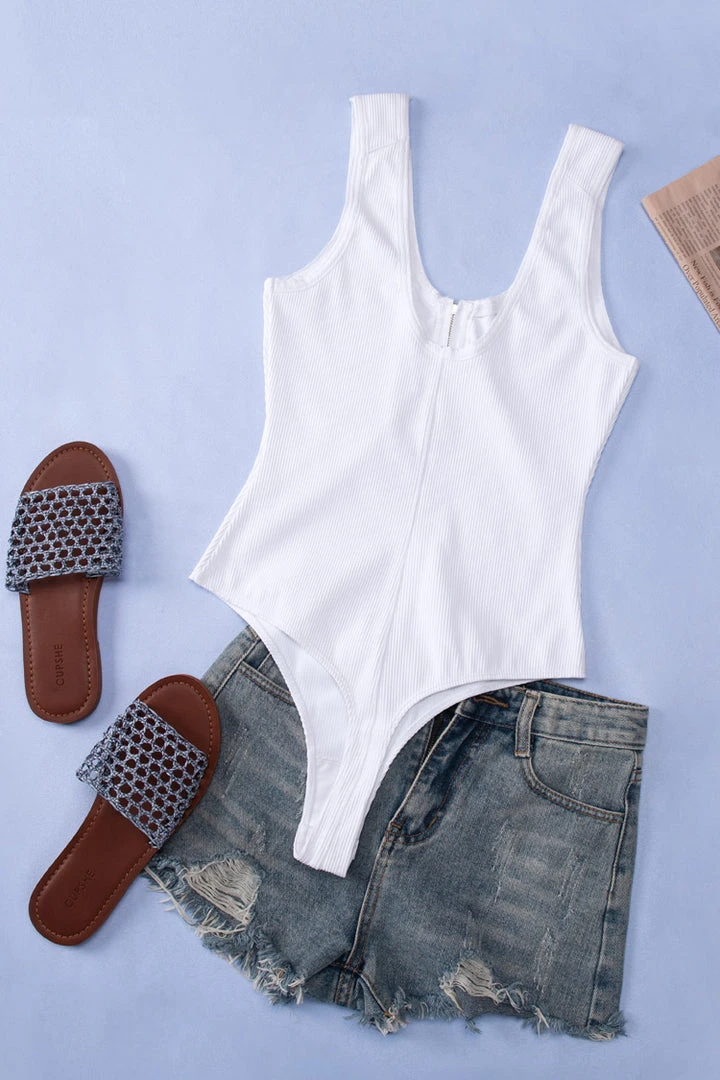 Enhance your collection with this white Zelda Zip Tank Bodysuit. Crafted with front zip and scoop back, this piece is perfect for everyday wear.